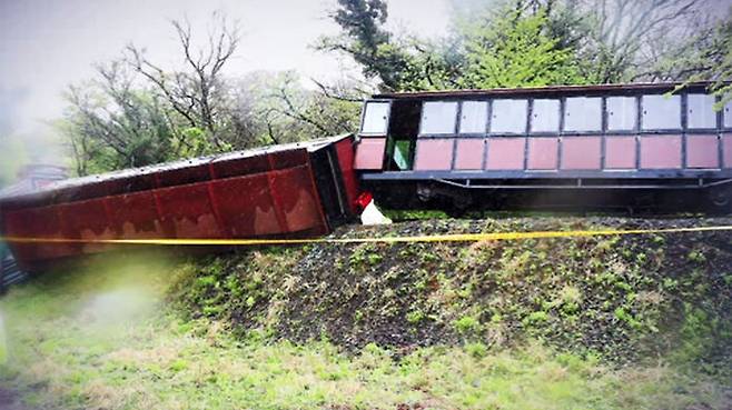 곡선 구간 돌다 뒤집힌 관광용 기차..24명 부상