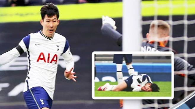 손흥민은 전반 33분 맨유 맥토미니에게 얼굴을 맞고 쓰러졌고