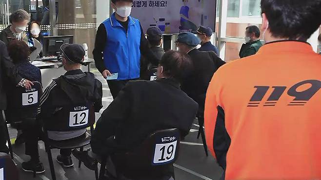 아들은 10년 전 발생한 뇌출혈의 후유증으로 요양병원에 입원했는데, 어머니는 아들의 백신 접종을 반겼습니다.