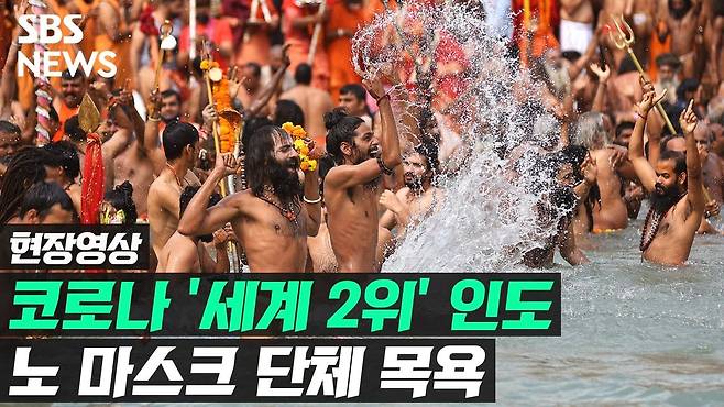자신의 죄를 씻기 위해 신성한 갠지스강을 찾은 신자들은 대부분 마스크를 착용하지 않은 채 거리 두기 없이 다닥다닥 붙은 모습이었습니다.