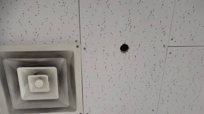 사무실 천장에는 스프링클러 없이 구멍만 나 있는데, 정작 배수관도 연결돼 있지 않습니다.