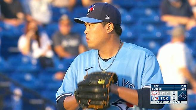 투구 수가 95개에 이르자 류현진은 마운드에서 내려왔고, 타선이 홈런 2방 포함 10안타 7득점을 지원하면서 토론토는 7대 3으로 승리했습니다.