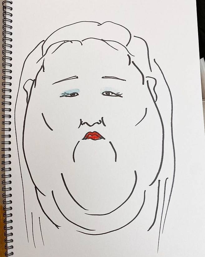 해당 그림은 하준수가 그린 것으로 보이는 이국주의 캐리커처.