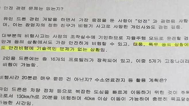 자율주행 모드에서 안전하게 비행할 수 있고 태풍과 폭우에도 문제 없다는 이항 측 일방적 주장을 담았습니다.