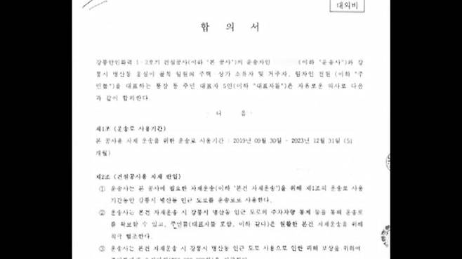 확인해보니 2019년 11월에 이미 업체 측과 주민 대표 간 합의서가 작성돼 있었습니다.