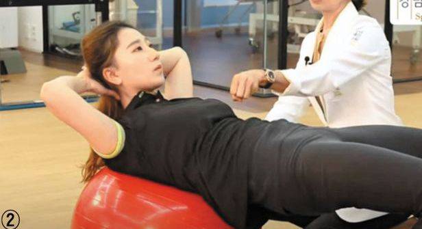 나이 들수록 볼록해지는 윗배 뱃살.. 짐볼에 누워 상체 들어올려 보세요