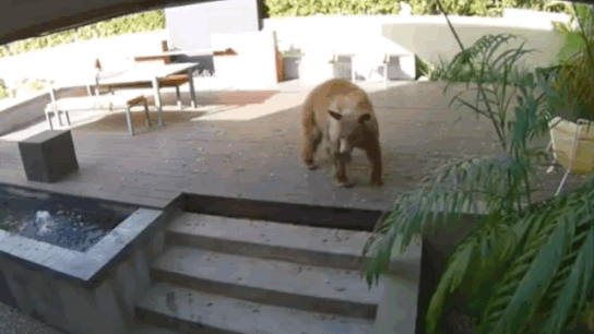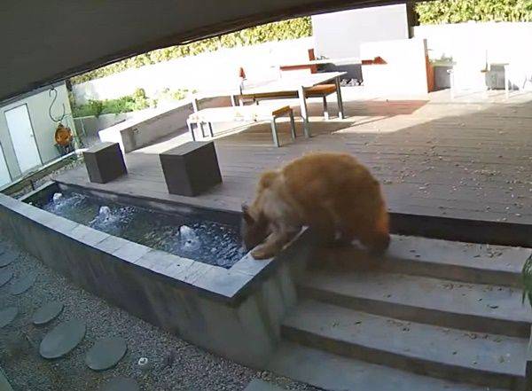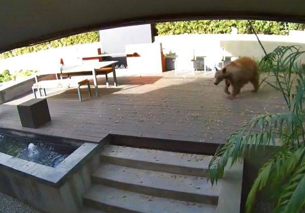 영상 속 곰은 마당 분수대에서 물을 마시다 과감하게 집 안까지 들어와 부엌을 구경하기 시작했습니다.
