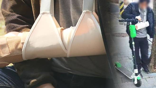 해당 공유 킥보드 업체는 킥보드를 타다 사고가 날 경우, 보험으로 보장받을 수 있다고 홍보했는데, 어떻게 된 일인지 전형우 기자가 취재했습니다.