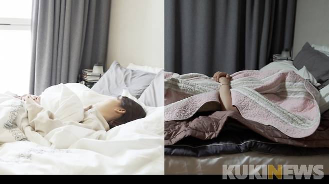 꾸미지 않은 ‘날것’의 영상도 찍어 비교해봤습니다. 영상 속 기자는 후줄근한 차림에 코까지 골며 잡니다. 알람 소리에 깨지 못합니다. 3번째 알람이 울리고 나서야 겨우 눈을 뜹니다. 일어나서는 곧바로 화장실에 갑니다. 하품을 쏟아내며 말이죠. 침대 정리도 뒷전입니다. 시간이 부족해 앞머리만 감습니다. 아침 식사는 고사하고 옷을 고를 여유조차 없습니다. 전날 입은 옷을 그대로 입은 채 집을 나섭니다.