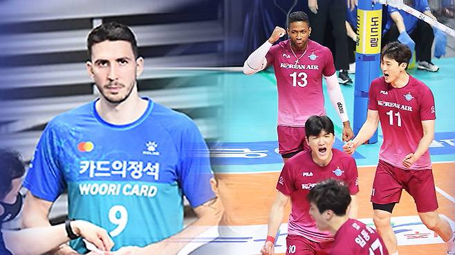 대한항공은 알렉스가 빠진 우리카드를 일방적으로 몰아붙이면서 3대 0 완승을 거뒀습니다.