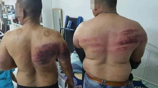 경찰이 공개한 사진을 보면 경호원들의 등에는 시뻘건 줄이 생기고, 피멍이 들었습니다.