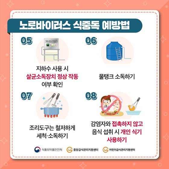- 노로바이러스 감염자는 조리하지 않기