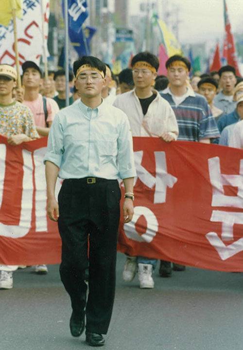 1990년 성균관대학교에 입학한 이후 2011년 민주당에 합류하기까지 20여 년을 좌파 가치를 추구하며 살았다. 마르크스 저작을 줄줄 외우고 노동 해방의 대의를 위해 죽을 수도 있다는 각오로 살았다. 노동 관련 사건으로 세 번 구속되었고 모두 2년 6개월의 청춘을 철창 안에서 보내야 했다. 수감생활을 하는 동안 천주교에서 베드로라는 본명으로 세례를 받았다.