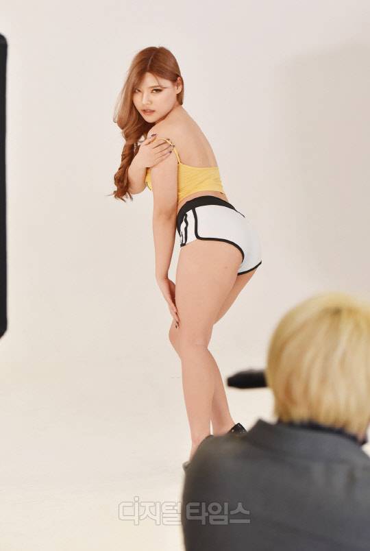모델 겸 대학생 오덕화가 서울시 강남구 V1 스튜디오에서 진행된 남성지 MAXIM(맥심) 3월호 '미스맥심 콘테스트' 1라운드 화보 촬영현장에서 포즈를 취하고 있다.