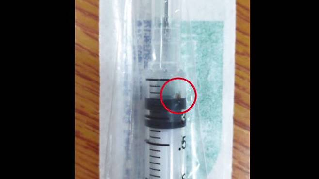 주사기 안에 남는 백신 없도록 알뜰히 접종할 수 있는 이른바 'K-주사기'에서 이물질이 발견됐습니다.
