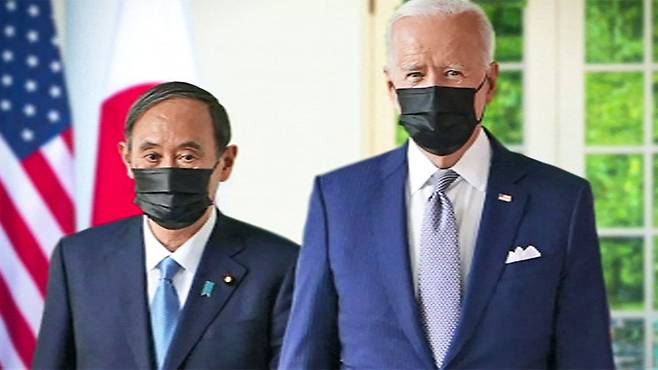 미국 바이든 대통령이 처음으로 직접 만나 회담한 외국 정상은 일본 스가 총리였습니다. 북한 비핵나 한미일 협력이 강조됐지만, 무엇보다 중국 견제하는데 미국과 일본이 확실히 같은 편임을 보여줬습니다.
