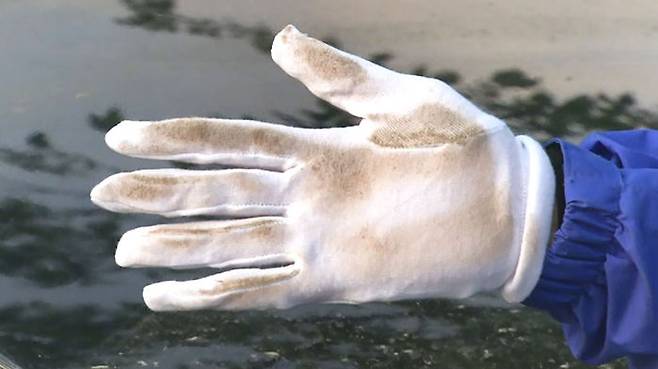 슥- 손댔을 뿐인데 '새까만 얼룩'..전국 뒤덮은 황사
