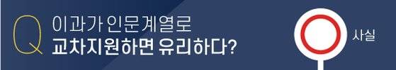 특별한 선택과목을 요구하지 않아 문과나 이과나 상관없이 지원할 수 있는 '교차지원'이 가능한 학과에서는 어떨까. 바뀐 수능에서는 이과생이 유리해질 가능성이 높다.