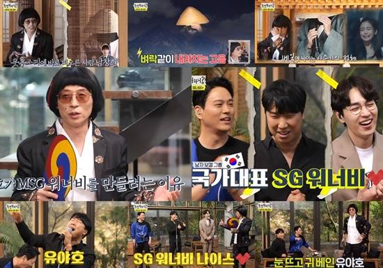 이외에도 SG워너비는 ‘살다가’, ‘아리랑’, ‘타임리스’를 부르며 미니 콘서트 무대를 선사했다. 완벽한 하모니로 감성을 끌어올린 명곡 릴레이 무대는 유야호는 물론 안방에도 짙은 감동을 안겼다. 이에 압도된 제작자 유야호는 “이거 MSG워너비 안 되겠다”며 현실 자각 타임에 빠진 모습으로 폭소를 자아냈다.