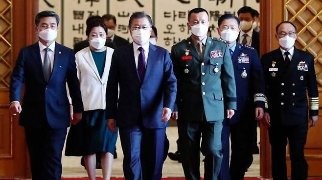 문재인 대통령은 지난 13일 해병대 사령관 진급 및 보직 신고를 받으며 김태성 신임 사령관에게 "세계적 수준의 정예군이 되길 바란다", "완전한 평화가 정착되기까지 강한 국방력이 필요하고 그 선두에 해병대가 서달라", "서해 주민과 어민들을 지켜달라"고 당부했습니다.