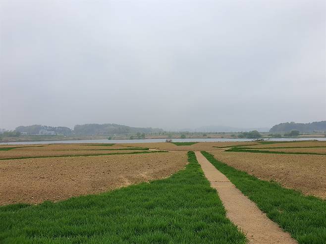 | ▲ 청보리를 심지 않은 곳에는 코스모스 씨앗을 뿌렸다. 코스모스가 자라고 꽃이 필때까지 거대 코스모스 조경은 다양한 모습으로 볼거리를 제공할 것이다. |