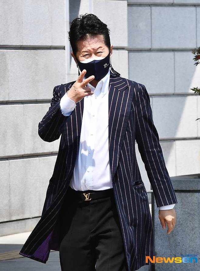 가수 태진아가 4월 19일 방송 프로그램 녹화를 위해 KBS 방송국으로 들어서고 있다.