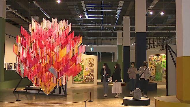 코로나19로 관람 인원이 제한되는 상황에서도 현대 미술 축제를 즐기려는 발길이 꾸준히 이어지고 있습니다.