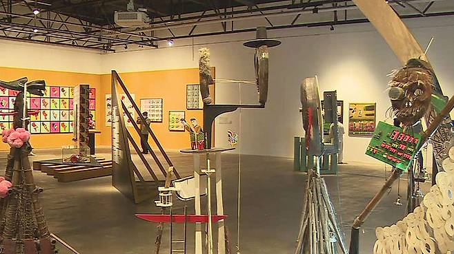 [한금현/광주비엔날레 전시부장 : 친숙한 이미지도 있으면서 현대 미술을 좀 가까이할 수 있게 됐다고 평을 주시고요. 특히 1층을 개방해서 무료로 하니까 사람들이 이 공간 안에서 편안함을 즐기시는 것 같습니다.]