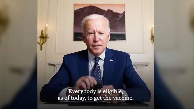 [바이든/미국 대통령 : 여러분, 좋은 소식이 있습니다. 오늘부터 누구나 백신을 맞을 자격이 주어집니다. 우리는 충분한 백신 물량이 있습니다. 여러분은 백신으로 보호를 받아야 합니다. 제발 백신을 맞아주세요.]
