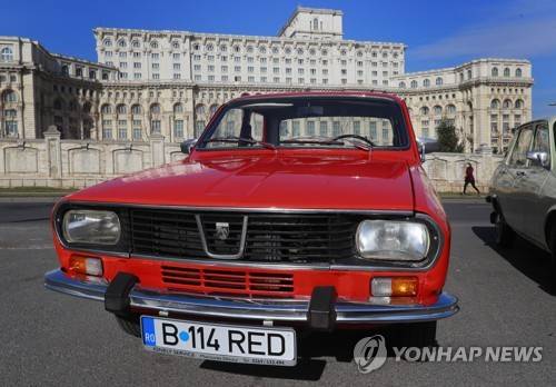 epa09146546 Dacia cars belonging to 'The Red Patrol' tour company fleet, in front of Ceausescu's palace in Bucharest, Romania, 17 February 2021 (issued 20 April 2021). More than three decades after the fall of the communist regime of Nicolae Ceausescu, the aesthetic of that time, marked by oppression and deprivation, has become fashionable in Romania, especially among 'hipsters' and foreign tourists. One way to get a glimpse of Bucharest's historical scars from Europe's troubled 20th century is ' The Red Patrol' tour. It allows visitors to explore the city as a passenger or driver of an old Dacia, a car brand created by Ceausescu. EPA/ROBERT GHEMENT ATTENTION: This Image is part of a PHOTO SET