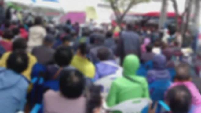 대기하기 위한 간이 의자도 모자라 주차장 앞 공터까지 빼곡히 줄지어 섰고 사회적 거리두기는 찾아보기 어렵습니다.