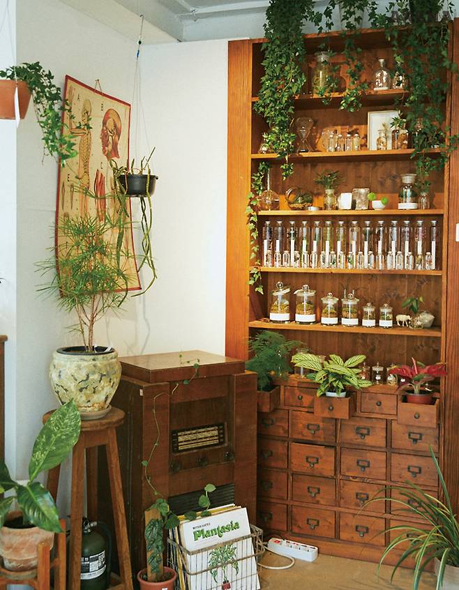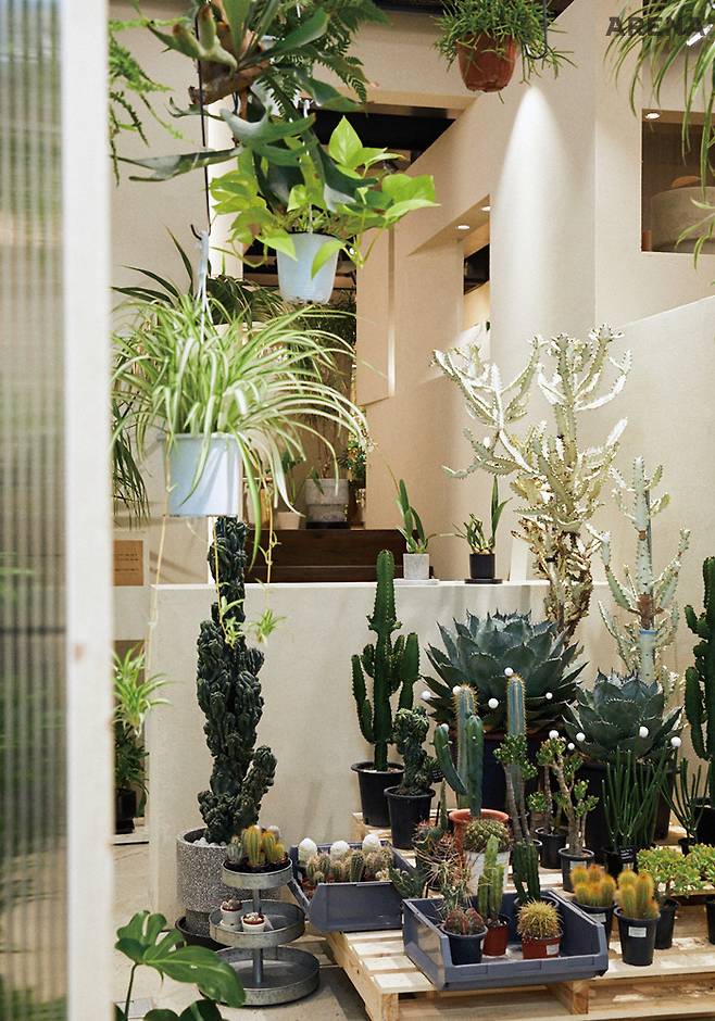 공간의 콘셉트에 어울리게 식물을 디자인하고 그 식물은 한 편의 서사를 만들어낸다. 크고 작은 선인장과 모래가 잔뜩 쌓여 있는 공간에선 건조한 사막이 느껴지고, 작은 화분의 분재들이 놓여 있는 공간에선 동양적인 전통미가 느껴진다. 이렇듯 식물을 어떻게 디자인하느냐에 따라 공간의 콘셉트가 좌우된다. 식물을 디자인하는 틸 테이블의 오주원 대표는 ‘사람과 식물이 공존할 수 있는 공간을 꿈꾼다’고 했다.