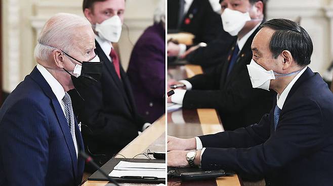 바이든 대통령은 답변을 마친 뒤 스가 총리 쪽을 돌아보며 답변 기회를 넘겼으나 스가 총리는 질문에는 답하지 않고 일본 교도통신 기자를 지명하며 질문 기회를 부여했습니다.