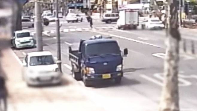 CCTV를 확인해 보니 해당 트럭의 운전자가 갓길에 정차 후 차에서 내리는 모습이 담겨 있었습니다.
