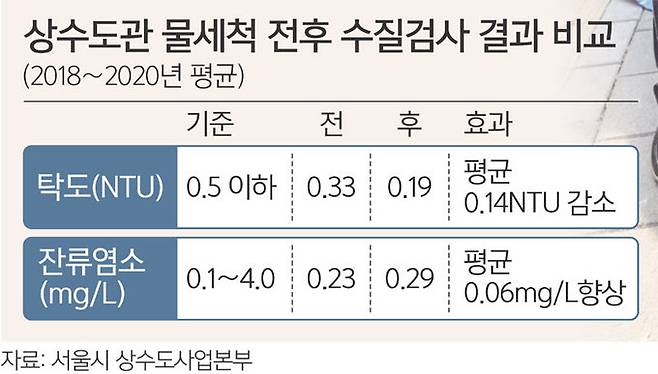 서울상수도본부는 관세척 의무화 이전인 2009년부터 직경 350㎜ 이하 수도관에 대해 5년 주기로 물세척을 실시해왔다.