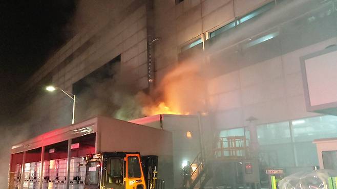 어젯(22일)밤 9시쯤 충북 청주시 흥덕구의 LG에너지솔루션 오창공장 보일러실에서 폭발과 함께 불이 났습니다.