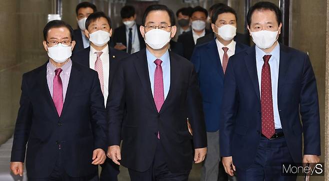 [머니S포토] 국민의힘 비대위 회의 들어서는 '주호영'