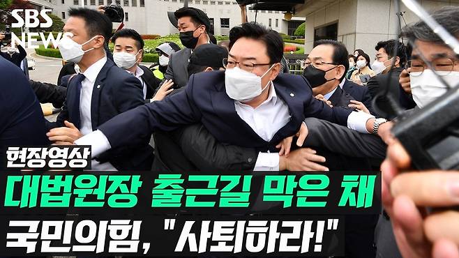 [영상] 국민의힘, 대법원장 출근 차량 저지 시도하며 사퇴 촉구