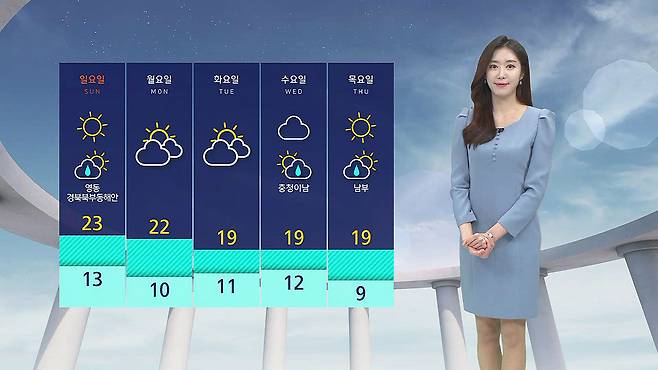 휴일에는 강원 영동을 제외하고는 대체로 맑은 날씨가 이어지겠고요, 다음 주는 대체로 평년 수준의 온화한 봄 날씨가 예상됩니다.