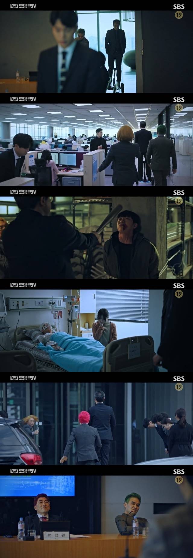 한편 이날 시청자들은 회사 내에서 전동휠을 타는 괴짜 같은 모습, 회사 직원들이 총 천연색한 염색을 한 것, 갑질 폭행한 것을 두고 '그것이 알고싶다'에서도 한차례 다뤘던 양진호 회장 사건을 떠올렸다. 몇몇 시청자들은 이 에피소드가 실화인 것에 한 차례 경악, 최근 실제 인물이 고직 징역 5년 형을 받은 것에 한차례 더 경악하며, 극에서라도 실현될 통쾌한 복수극에 관심을 집중시켰다. (사진=SBS '모범택시' 캡처)