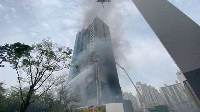 소방당국 파악 결과 불은 19층짜리 건물 5층에서 발생한 걸로 추정됩니다.