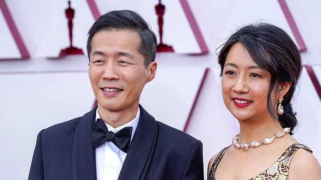 '미나리'를 연출한 정이삭 감독과 부인 밸러리 정 (사진=게티이미지코리아)