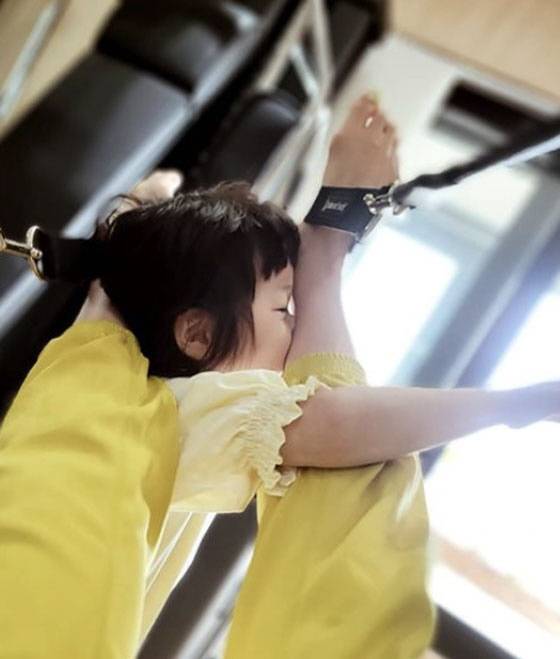 '백종원♥' 소유진 딸 세은, 운동 중인 엄마 다리에 꽉 낀 얼굴 "내가 잡아줄거야"