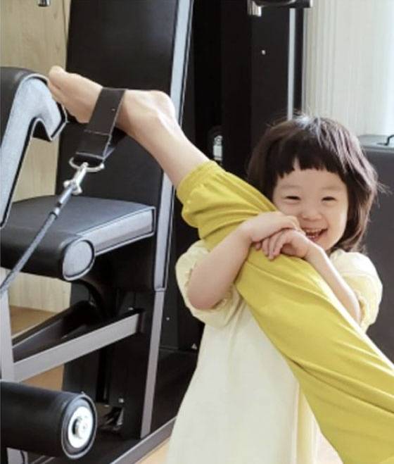 이때 운동 중인 엄마 다리를 꼭 잡은 채 행복한 미소를 짓고 있는 막내 세은 양의 모습이 사랑스럽다.