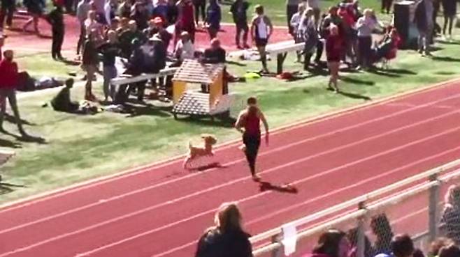 미국에서 열린 고등학생 육상경기 도중, 반려견 한 마리가 난입해 선수들을 제치고 1위로 결승선을 통과했습니다.