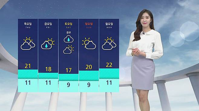 서울이 12도로 오늘과 비슷하게 출발하겠고 낮 기온은 서울이 20도, 광주와 대구는 25도까지 오르겠습니다.