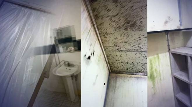 곰팡이로 도배된 벽과 천장. 벽에는 이끼까지 가득 꼈습니다.