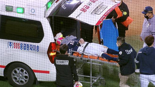 두산 박세혁은 지난 16일 잠실 LG전에서 얼굴에 공을 맞아 쓰러졌습니다. LG 김대유가 던진 시속 136km짜리 직구가 헬멧 보호대를 스치고 얼굴을 강타했습니다. 고통을 호소하던 박세혁은 응급처치를 받은 뒤 곧바로 병원으로 후송됐습니다. 다음 날 정밀 검사를 받았고, 눈을 둘러싼 뼈 '안와'가 골절됐다는 진단이 나왔습니다.