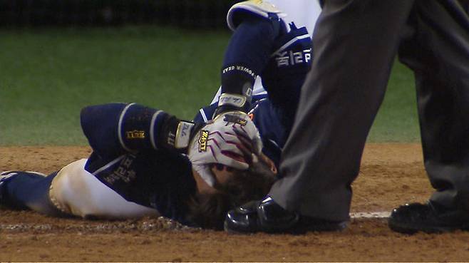 두산 박세혁은 지난 16일 잠실 LG전에서 얼굴에 공을 맞아 쓰러졌습니다.