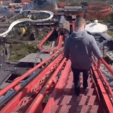 또 다른 영상에는 롤러코스터에서 내린 탑승객들이 직접 계단을 걸어 내려가는 모습이 담겨 누리꾼들을 경악하게 했습니다. 이들은 오직 난간에 의지한 채 사방으로 뻥 뚫린 계단을 내려갔습니다.